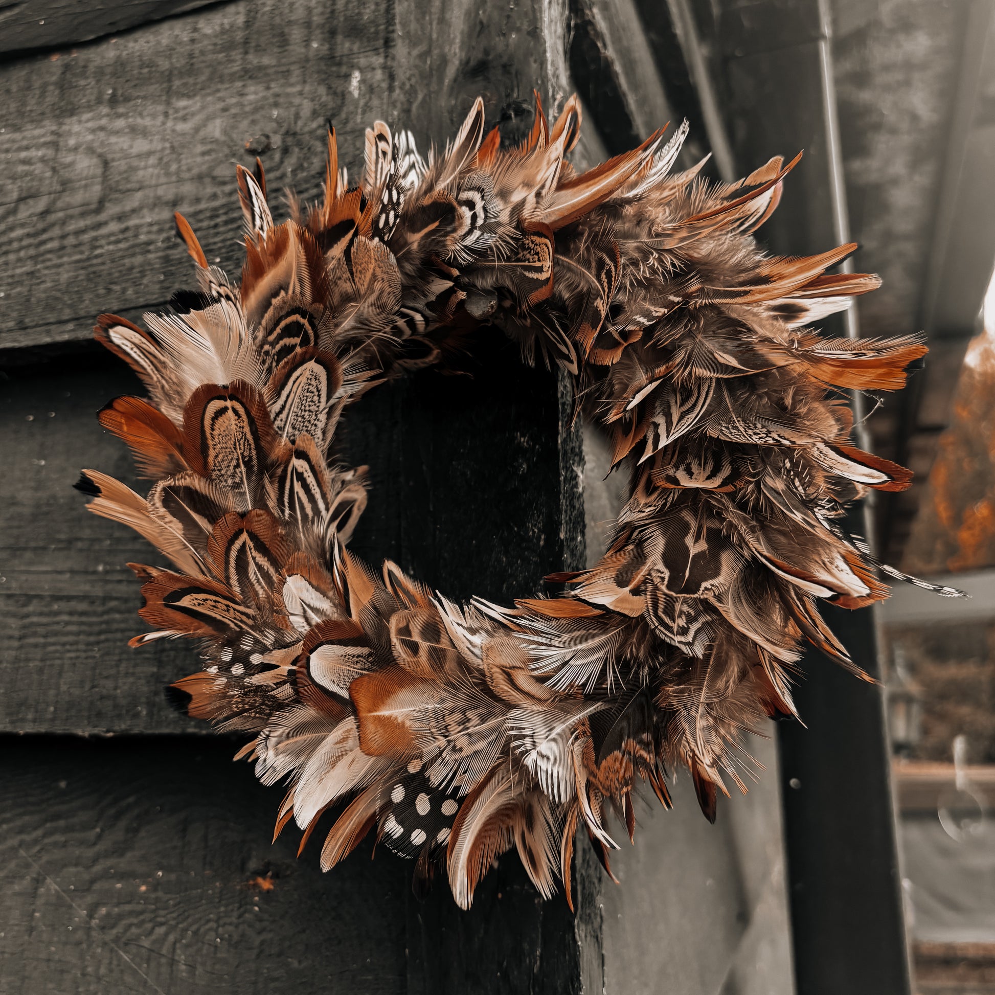 Our feather wreaths are designed for indoor display or very well-protected spaces only. They are not suitable for outdoor use, as exposure to rain, wind, moisture, or prolonged sunlight may damage the natural feathers over time. If you choose to display a wreath outside, it must be in a fully covered, dry porch.